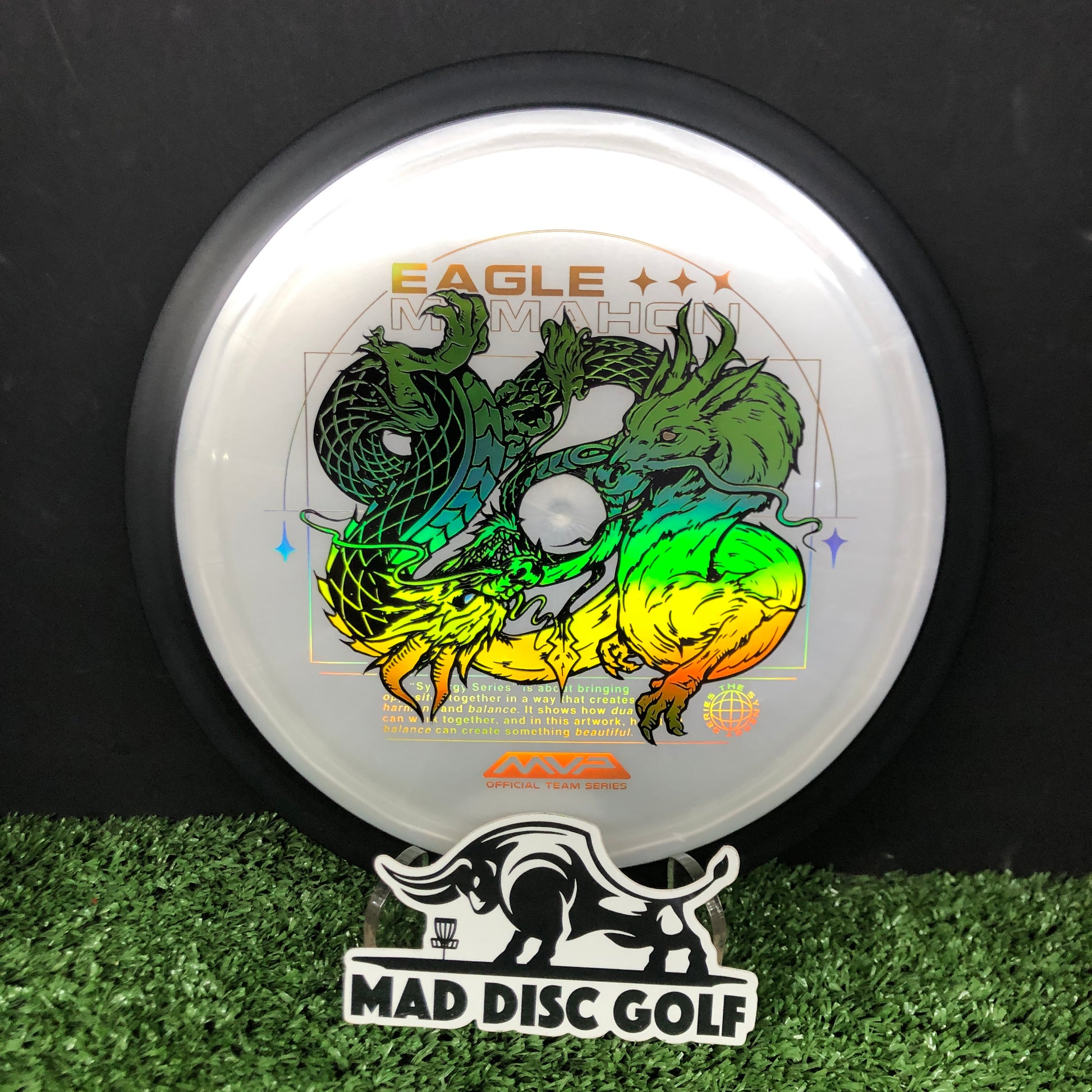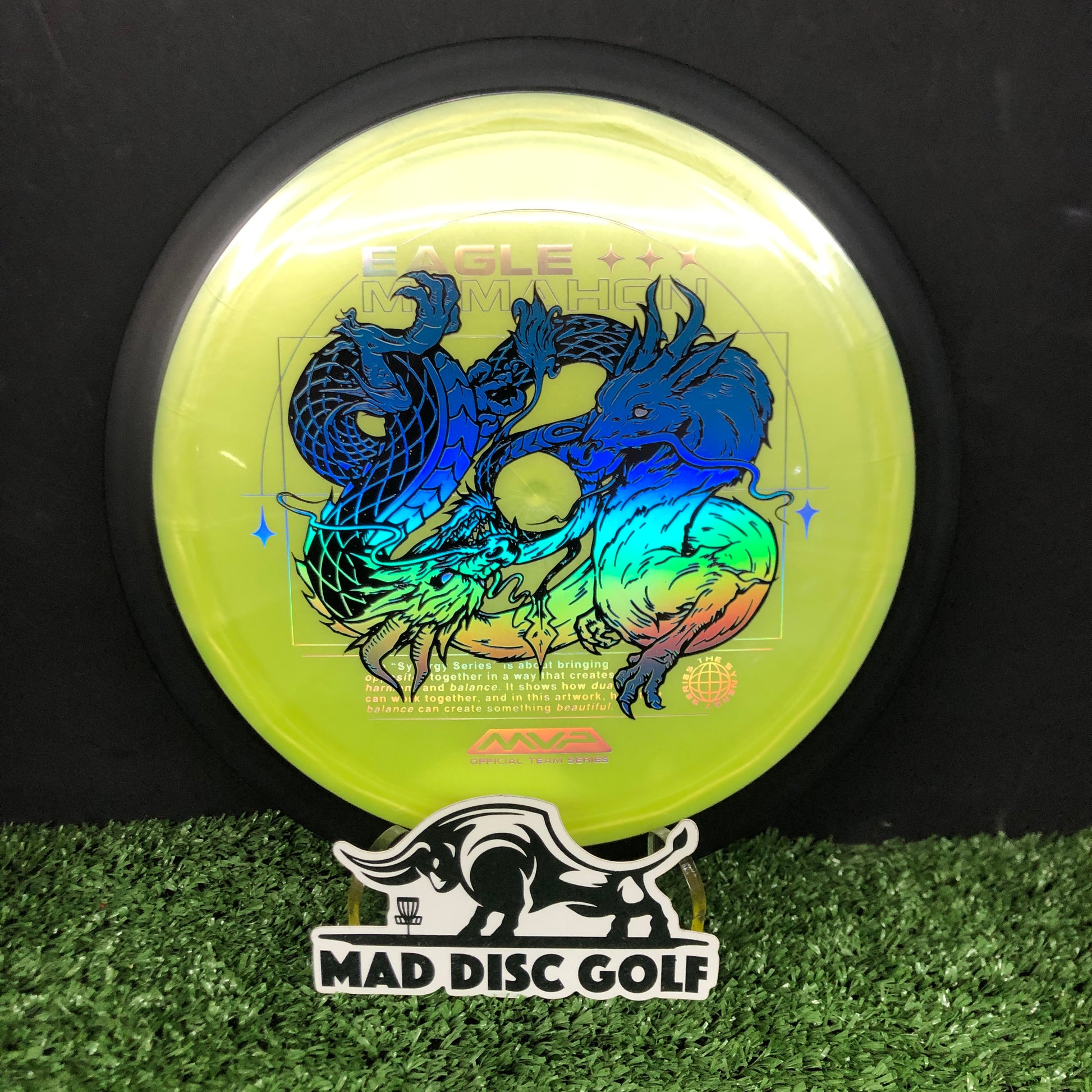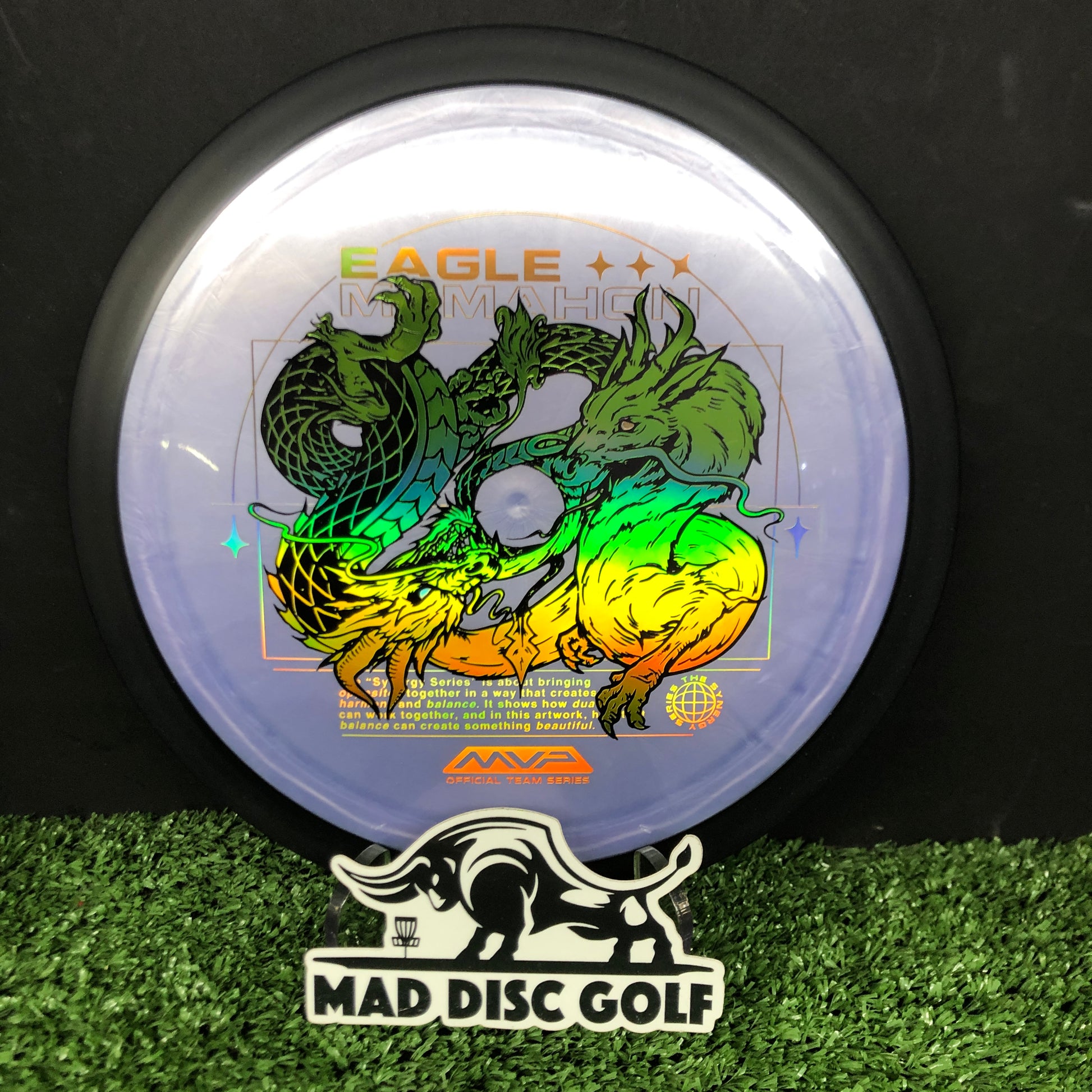 ¡El próximo disco de la serie Team Series de Eagle McMahon dentro de su nueva colección Synergy Series, ilustrado una vez más por el impecable Green C Studio: ¡el Plasma Dimension! Uno de los drivers más utilizados por Eagle, el Dimension es un driver exigente, con una velocidad de 14.5, muy sobreestable y con una gran resistencia a la potencia su primera elección para esta nueva serie de diseños centrados en el concepto de la dualidad en armonía.