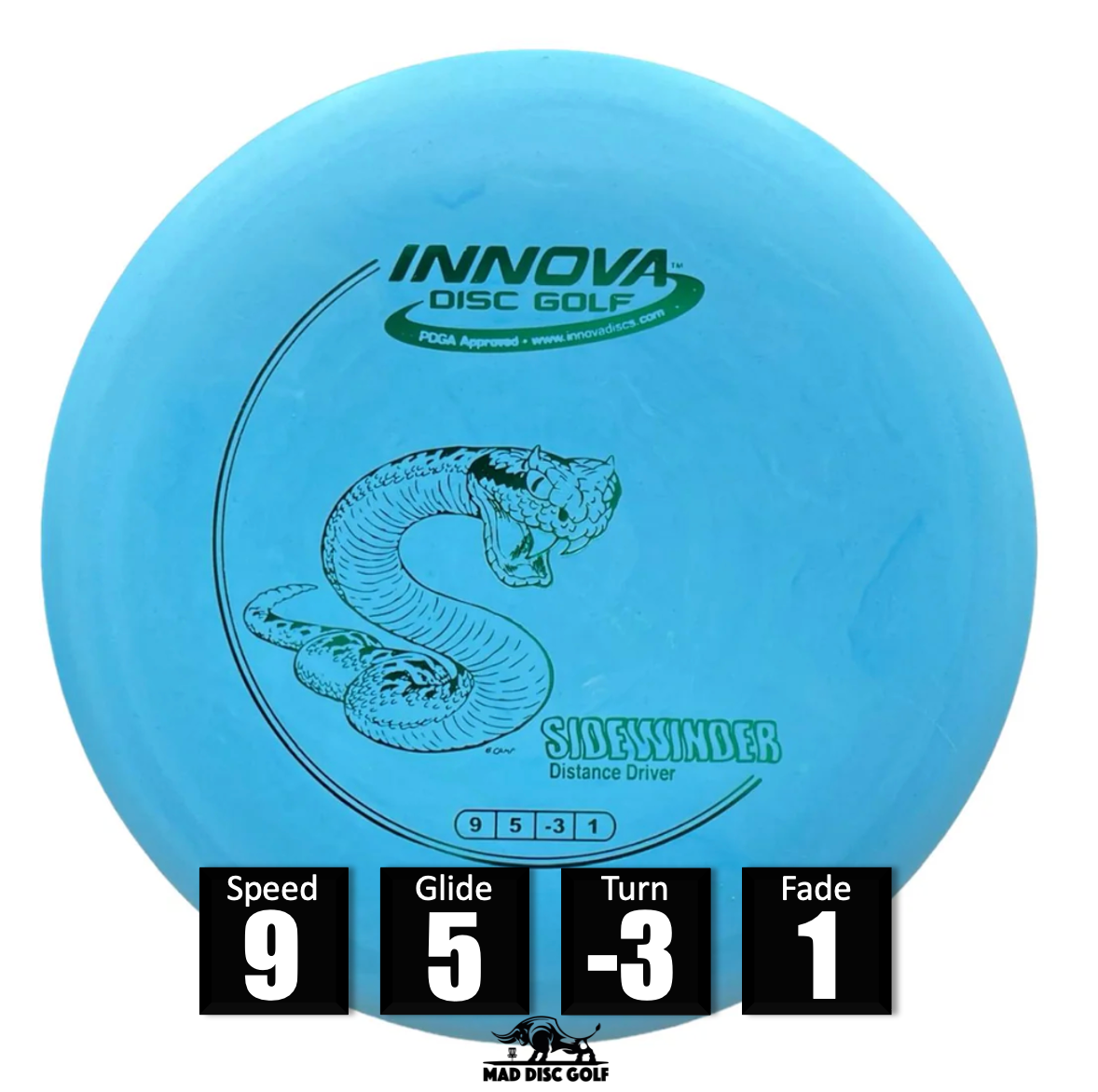 Es el mejor disco de Innova para tiros largos con giro (turnovers) y rollers de larga distancia. Incluso jugadores que nunca han tenido buenos resultados con rollers se van a sorprender con lo que pueden hacer con un Sidewinder.